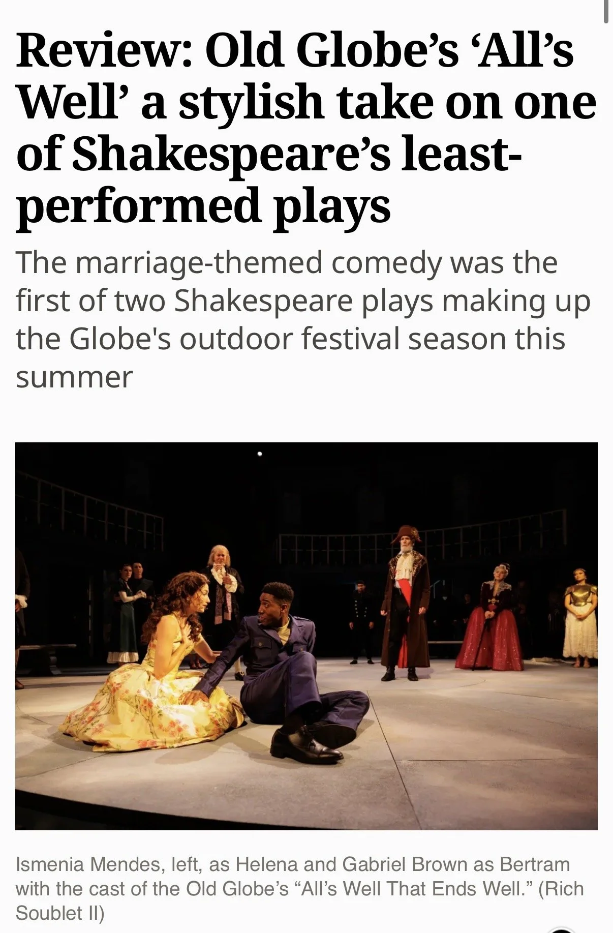 Gabriel stars in the leading role of Bertram in this classic Shakespeare comedy at The Old Globe Theatre in San Diego!